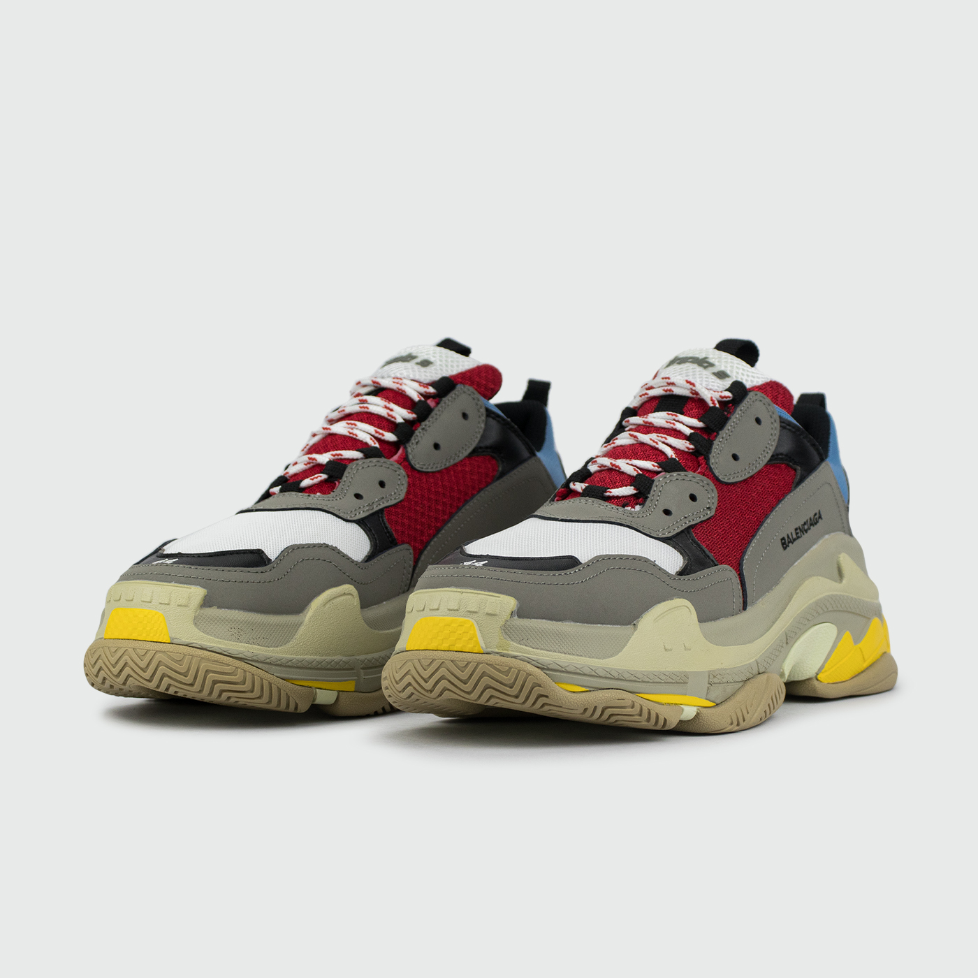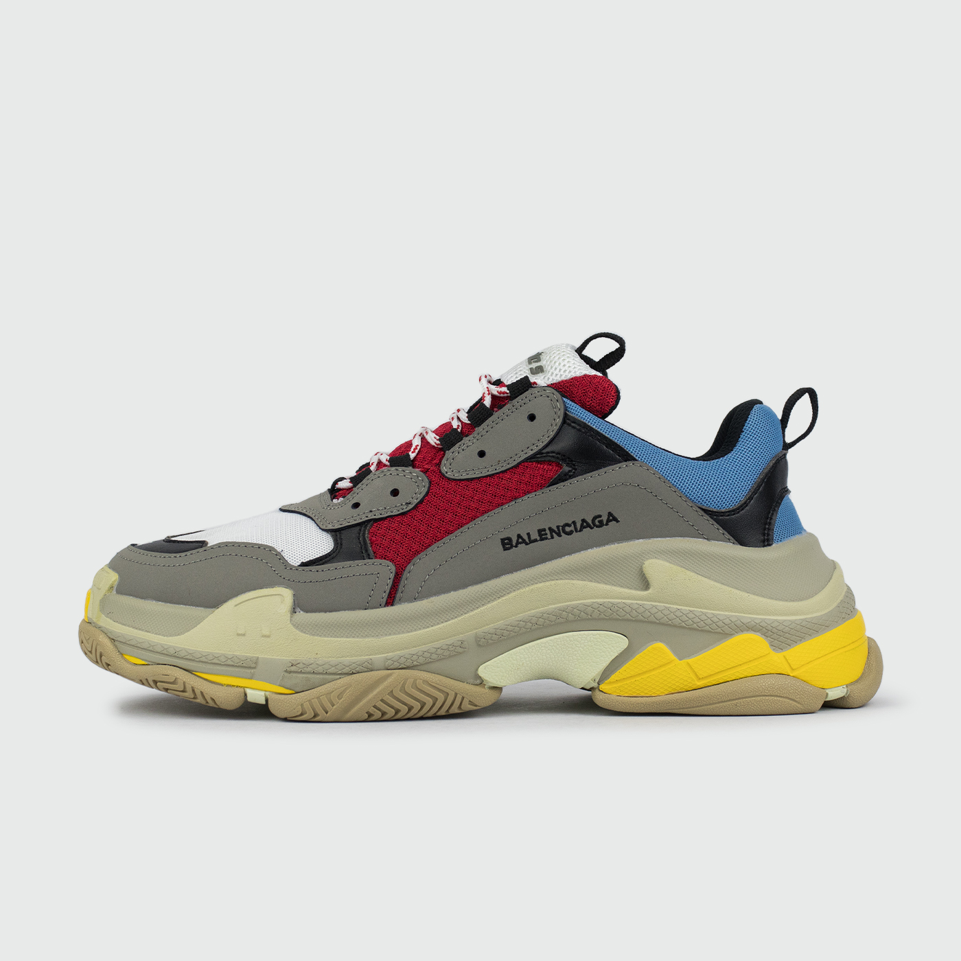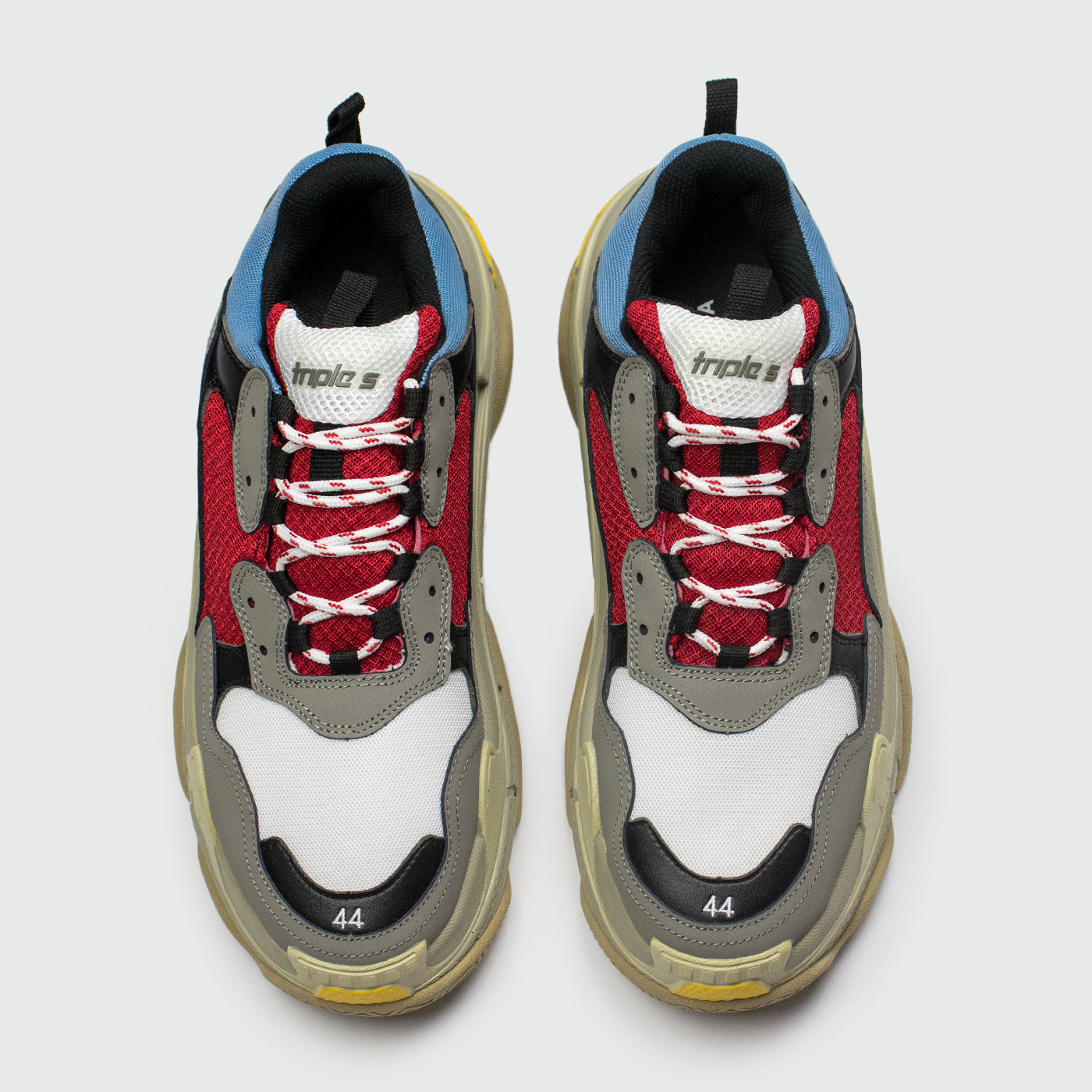 Ugly shoes sneakers from Balenciaga collection. The Triple S pair is made of synthetic leather and mesh textile.