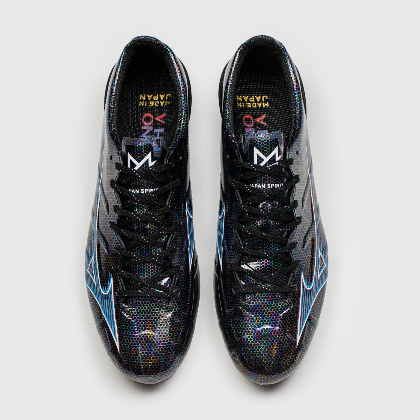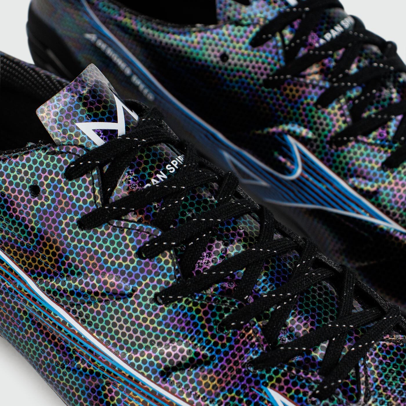 The Mizuno Alpha is a lightweight speed boot. Mizuno Enerzy foam provides enhanced cushioning and energy return, while the Engineered Fit woven synthetic construction ensures a perfect fit. The KaRVO Half-Board insole serves to return energy and accelerate sprinting. Super lightweight plate on the outsole with excellent flexibility and a clever combination of spikes for better traction.