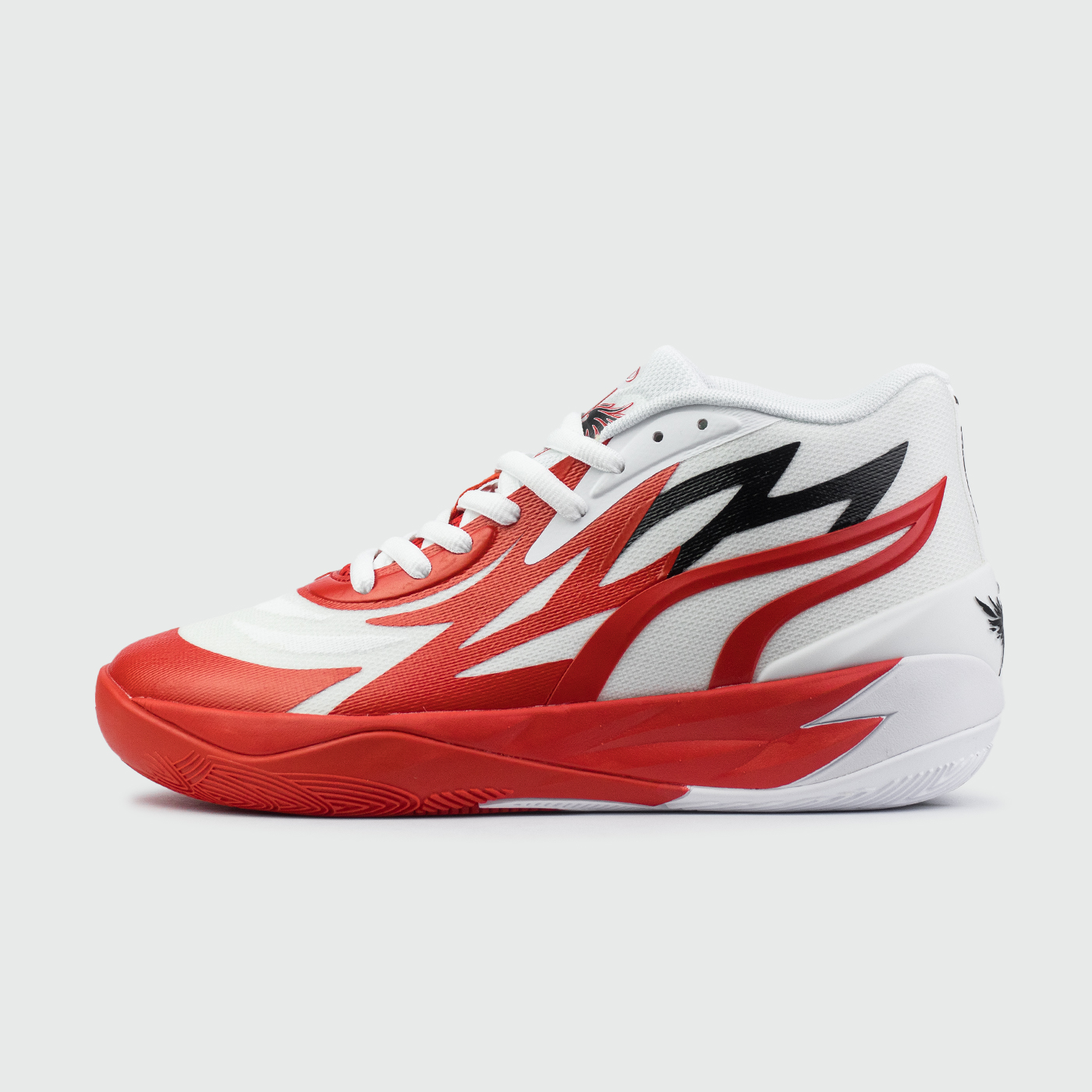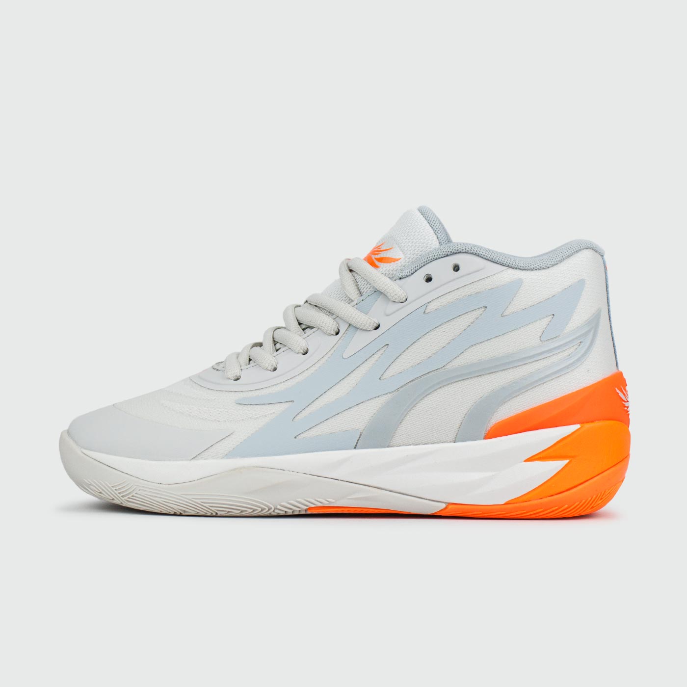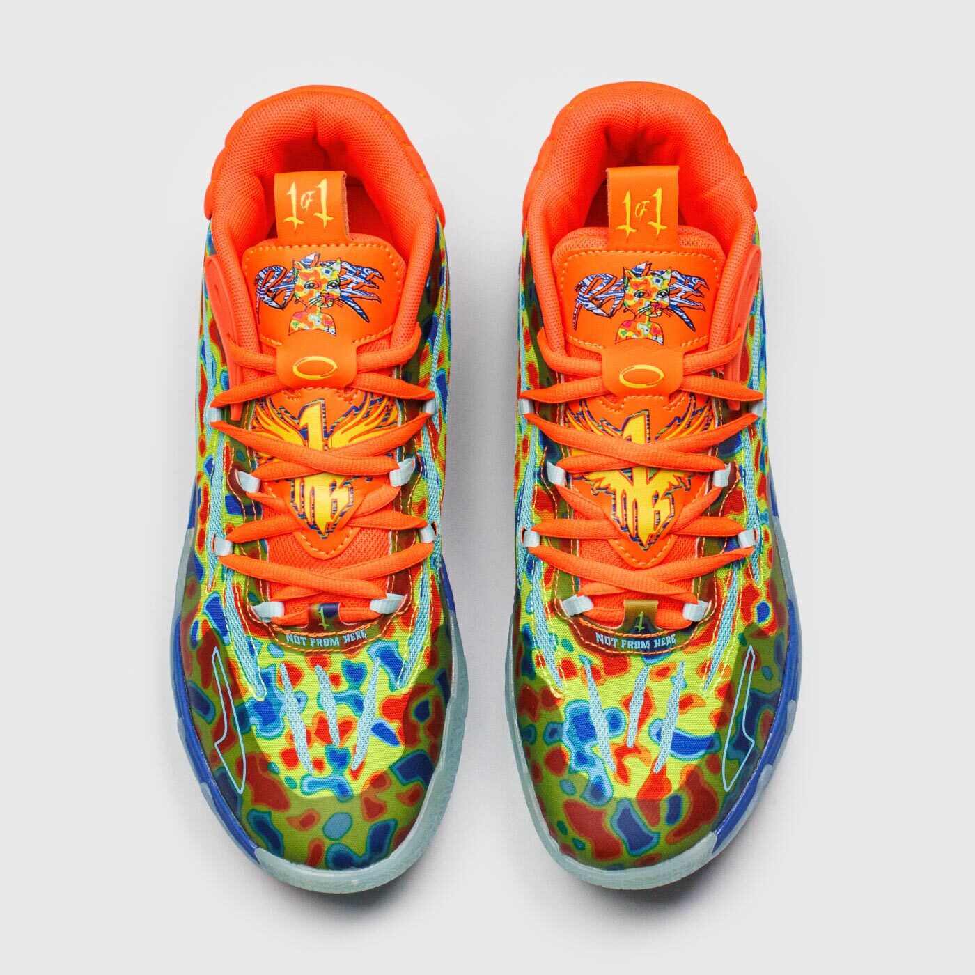 The silhouette of the Puma MB.03 basketball sneaker shares similarities with Lamelo Ball's previous two models, but the design looks bolder and more textured. The upper of the Puma MB.03 is layered.