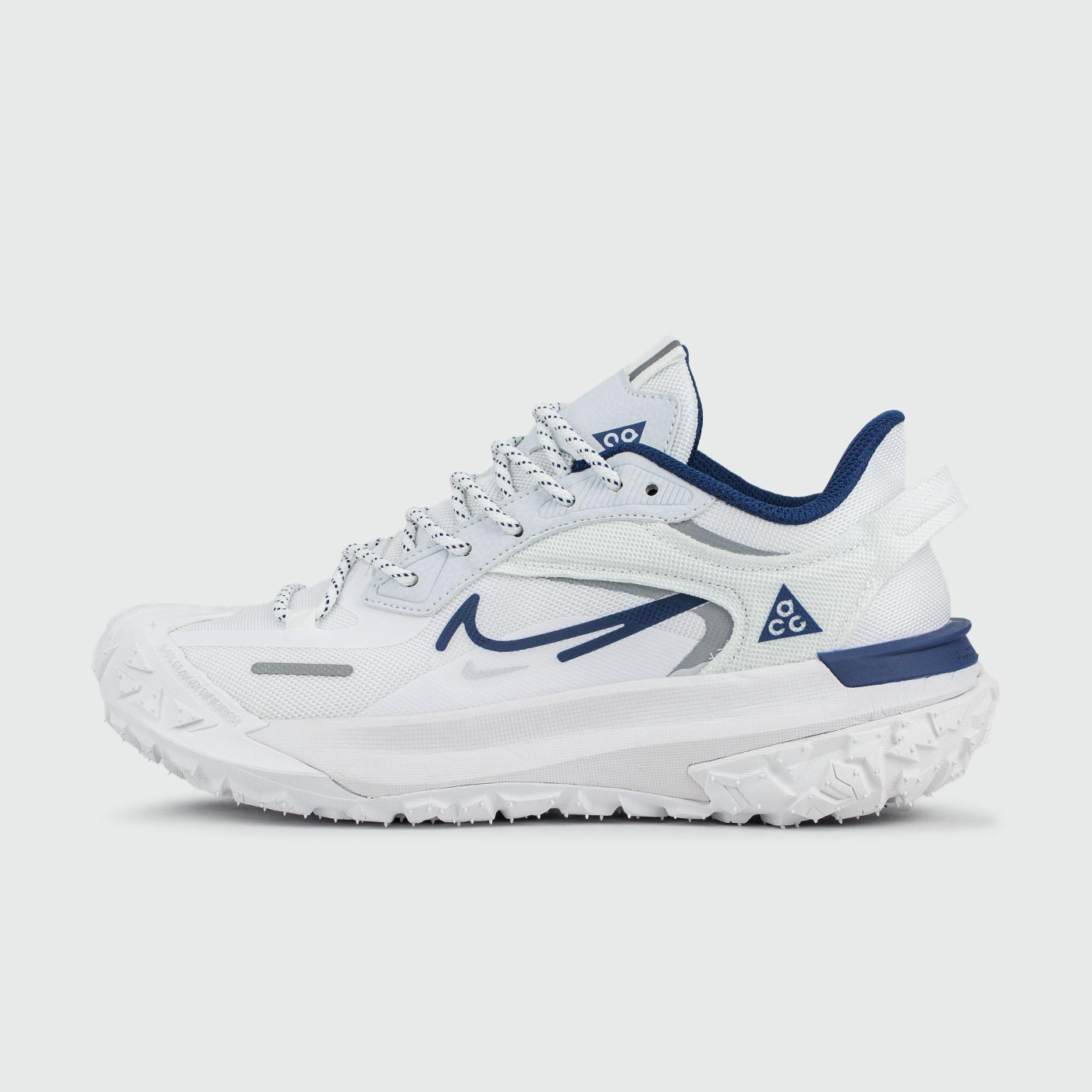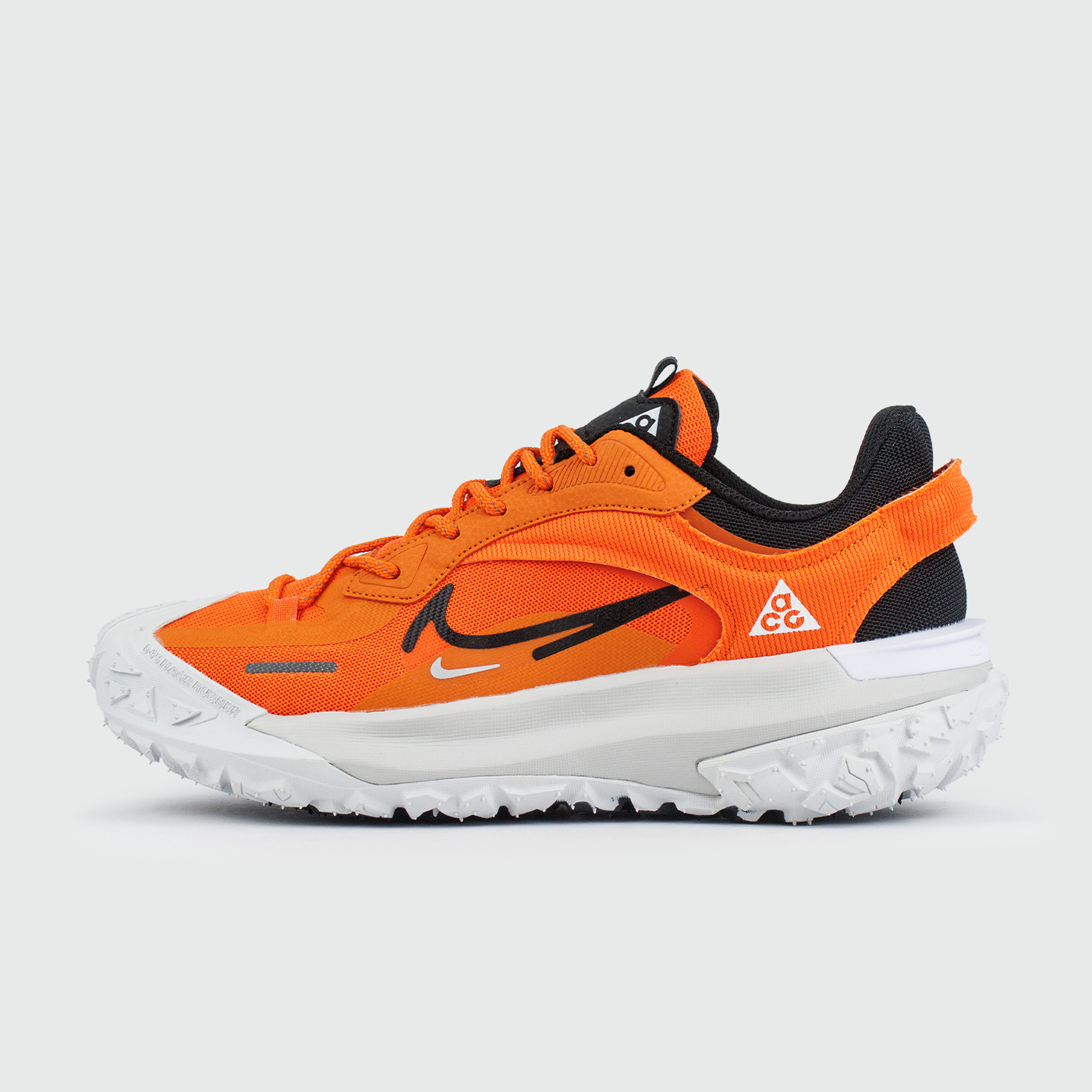 The upper of the Nike ACG Mountain Fly 2 Low sneaker is made of a dense synthetic fabric. The midsole, is designed for both hiking and cross-country running (on natural terrain such as dirt or grass). The visible foam consists of React technology, which hides a full-length carbon fiber plate in the foot for instant energy return.