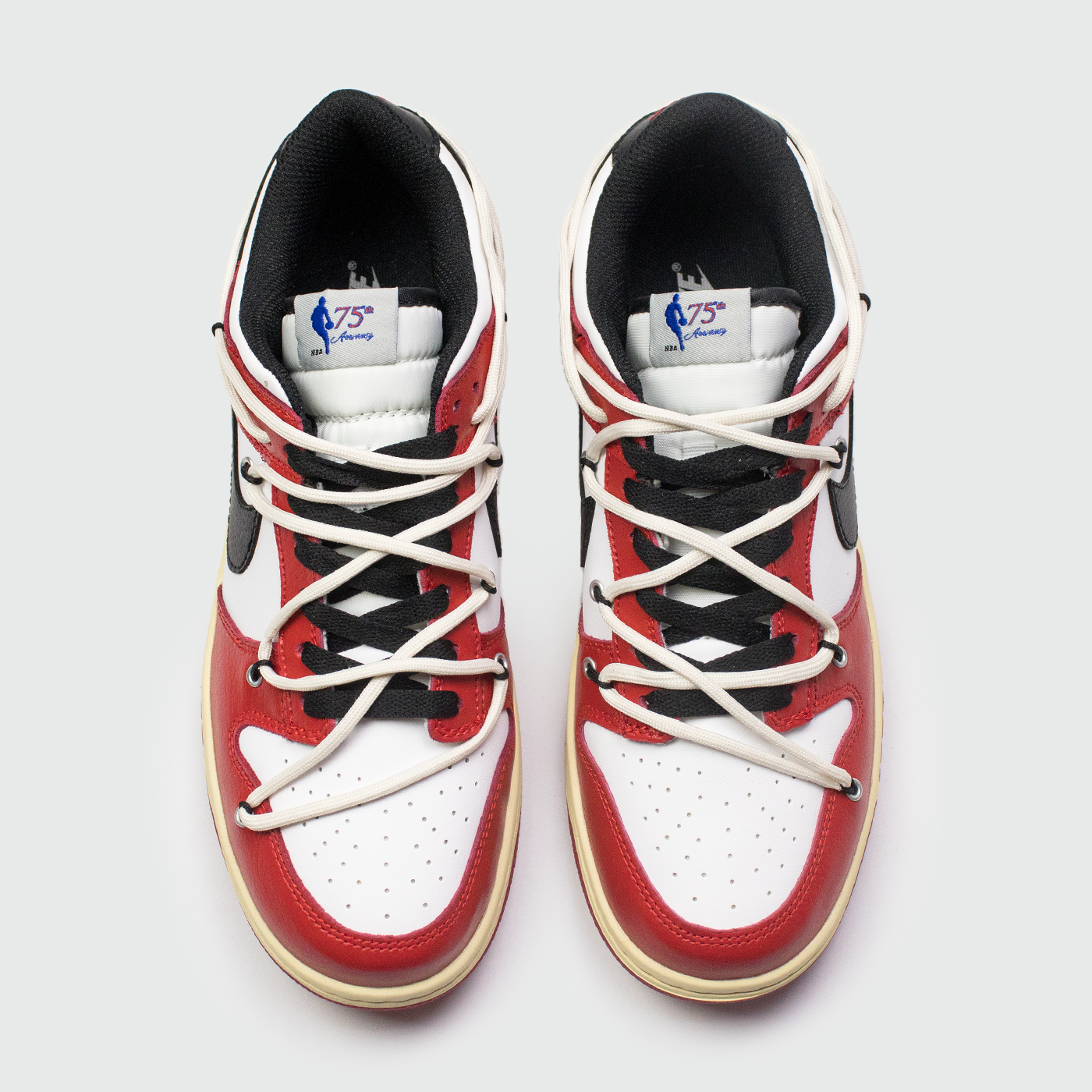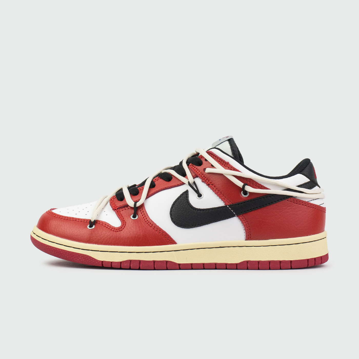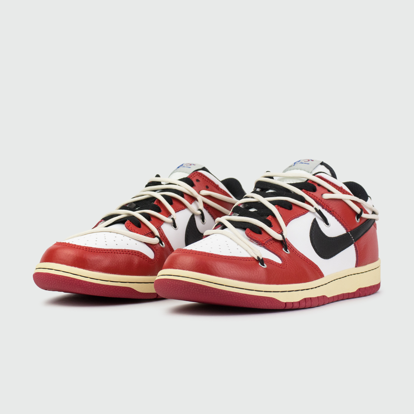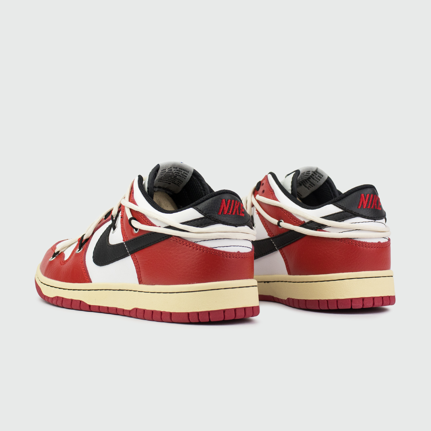 The Off-White x Nike Dunk Low is one of three exclusive colorways from Virgil Abloh. Red Gym color leather